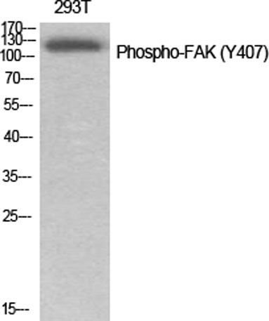 The antiserum was produced against synthesized peptide derived from human FAK around the phosphorylation site of Tyr407. AA range:373-422