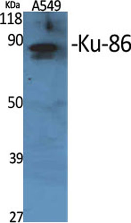 The antiserum was produced against synthesized peptide derived from human XRCC5. AA range:441-490