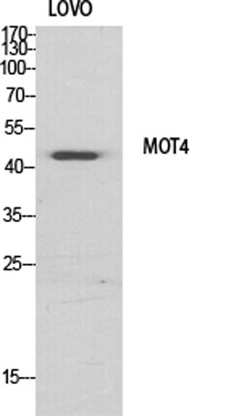 The antiserum was produced against synthesized peptide derived from human MOT4. AA range:233-282