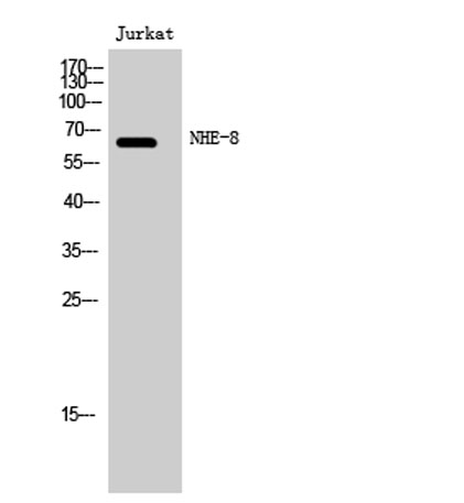 The antiserum was produced against synthesized peptide derived from human SLC9A8. AA range:451-500