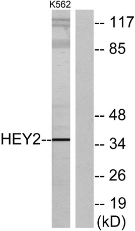 The antiserum was produced against synthesized peptide derived from human HEY2. AA range:21-70
