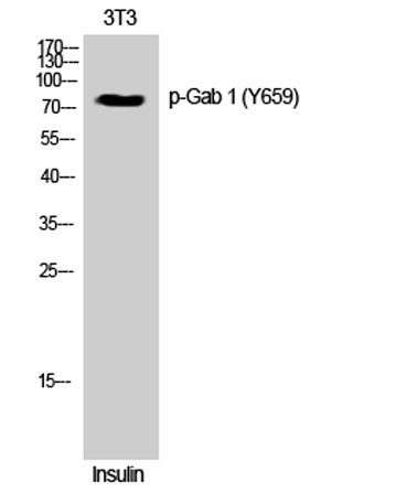 The antiserum was produced against synthesized peptide derived from human GAB1 around the phosphorylation site of Tyr659. AA range:644-674