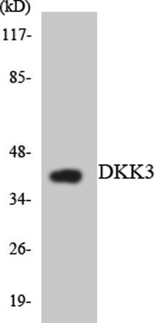 The antiserum was produced against synthesized peptide derived from human DKK3. AA range:111-160