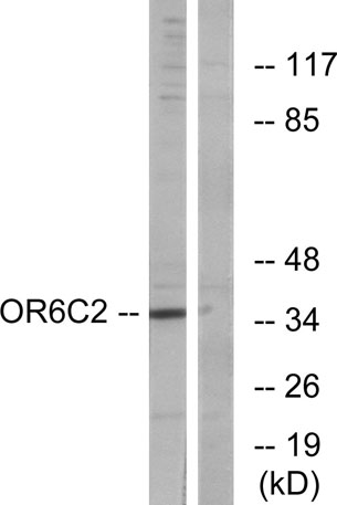 The antiserum was produced against synthesized peptide derived from human OR6C2. AA range:231-280
