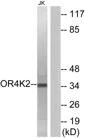 The antiserum was produced against synthesized peptide derived from human OR4K2. AA range:265-314