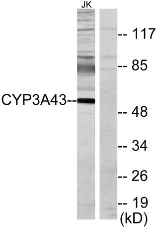 The antiserum was produced against synthesized peptide derived from human Cytochrome P450 3A43. AA range:231-280