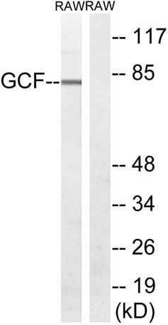 The antiserum was produced against synthesized peptide derived from human GCF. AA range:141-190