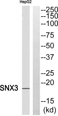 The antiserum was produced against synthesized peptide derived from human SNX3. AA range:91-140