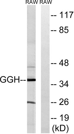 The antiserum was produced against synthesized peptide derived from human GGH. AA range:251-300