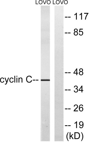 The antiserum was produced against synthesized peptide derived from human Cyclin C. AA range:234-283