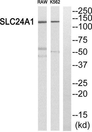 The antiserum was produced against synthesized peptide derived from human SLC24A1. AA range:154-203