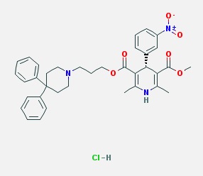 Smiles CC1=C([C@H](C(=C(N1)C)C(=O)OCCCN2CCC(CC2)(C3=CC=CC=C3)C4=CC=CC=C4)C5=CC(=CC=C5)[N+](=O)[O-])C(=O)OC.Cl