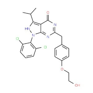 Smiles CC(C)C1=C2C(=NC(=NC2=O)CC3=CC=C(C=C3)OCCO)N(N1)C4=C(C=CC=C4Cl)Cl