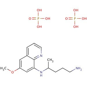 Smiles CC(CCCN)NC1=C2C(=CC(=C1)OC)C=CC=N2.OP(=O)(O)O.OP(=O)(O)O