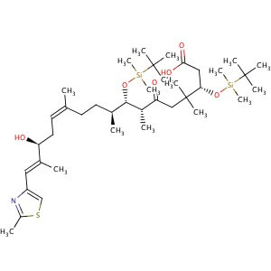 Smiles C[C@@H](CC\C(C)=C/C[C@H](O)C(\C)=C\C1=CSC(C)=N1)[C@H](O[Si](C)(C)C(C)(C)C)[C@@H](C)C(=O)CC(C)(C)[C@H](CC(O)=O)O[Si](C)(C)C(C)(C)C