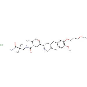 Smiles CC(C)[C@@H](CC1=CC(=C(C=C1)OC)OCCCOC)C[C@@H]([C@H](C[C@@H](C(C)C)C(=O)NCC(C)(C)C(=O)N)O)N.Cl