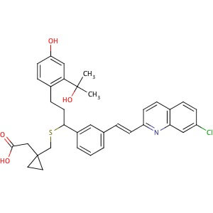 Smiles CC(C)(C1=C(C=CC(=C1)O)CC[C@H](C2=CC=CC(=C2)/C=C/C3=NC4=C(C=CC(=C4)Cl)C=C3)SCC5(CC5)CC(=O)O)O
