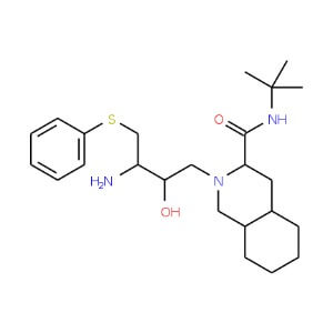 Smiles CC(C)(C)NC(=O)[C@@H]1C[C@@H]2CCCC[C@@H]2CN1C[C@H]([C@H](CSC3=CC=CC=C3)N)O