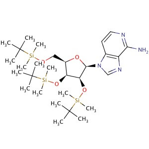 Smiles CC(C)(C)[Si](C)(C)OC[C@H]1O[C@H]([C@@H](O[Si](C)(C)C(C)(C)C)[C@H]1O[Si](C)(C)C(C)(C)C)N1C=NC2=C1C=CN=C2N