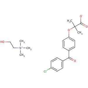 Smiles CC(C)(C(=O)[O-])OC1=CC=C(C=C1)C(=O)C2=CC=C(C=C2)Cl.C[N+](C)(C)CCO