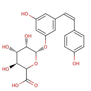Smiles C1=CC(=CC=C1/C=C\C2=CC(=CC(=C2)O[C@H]3[C@@H]([C@H]([C@@H]([C@H](O3)C(=O)O)O)O)O)O)O