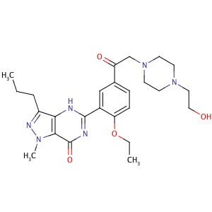 Smiles CCCC1=NN(C2=C1NC(=NC2=O)C3=C(C=CC(=C3)C(=O)CN4CCN(CC4)CCO)OCC)C