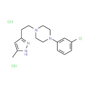 Smiles CC1=CC(CCN2CCN(CC2)C2=CC(Cl)=CC=C2)=NN1.Cl.Cl
