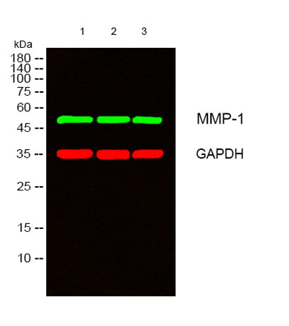 The antiserum was produced against synthesized peptide derived from human MMP-1. AA range:411-460