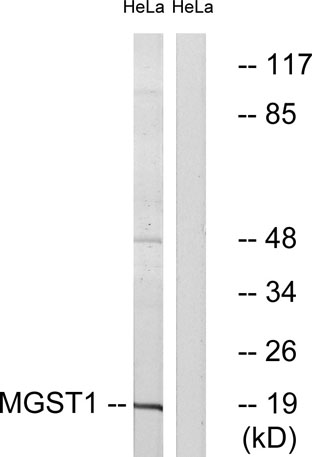 The antiserum was produced against synthesized peptide derived from human MGST1. AA range:42-91