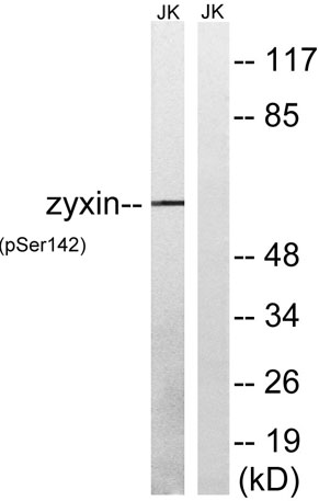 Immunogen The antiserum was produced against synthesized peptide derived from human Zyxin around the phosphorylation site of Ser142. AA range:108-157