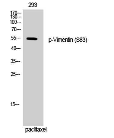 The antiserum was produced against synthesized peptide derived from human Vimentin around the phosphorylation site of Ser83. AA range:56-105