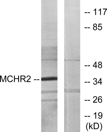 The antiserum was produced against synthesized peptide derived from human MCHR2. AA range:291-340