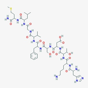 CC(C)CC(C(=O)NC(CCSC)C(=O)N)NC(=O)CNC(=O)C(C(C)C)NC(=O)C(CC1=CC=CC=C1)NC(=O)C(CO)NC(=O)C(CC(=O)O)NC(=O)C(C(C)O)NC(=O)C(CCCCN)NC(=O)C(CC2=CN=CN2)N