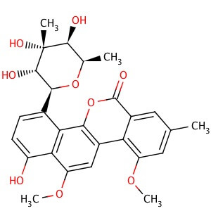 Smiles CC1C(C(C(C(O1)C2=C3C(=C(C=C2)O)C(=CC4=C3OC(=O)C5=CC(=CC(=C54)OC)C)OC)O)(C)O)O