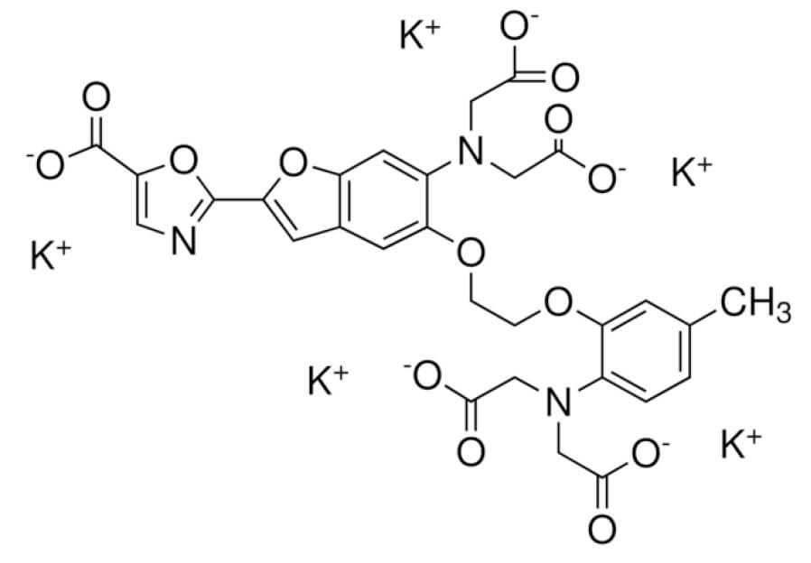 CC1=CC(=C(C=C1)N(CC(=O)[O-])CC(=O)[O-])OCCOC2=C(C=C3C(=C2)C=C(O3)C4=NC=C(O4)C(=O)[O-])N(CC(=O)[O-])CC(=O)[O-].[K+].[K+].[K+].[K+].[K+]