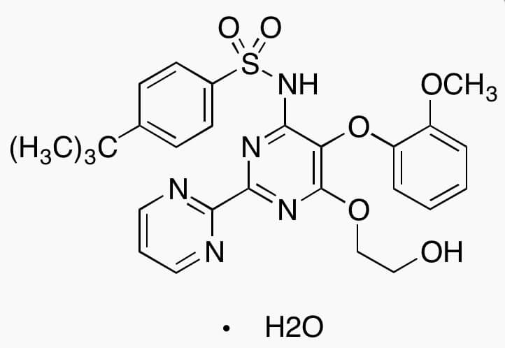 Smiles CC(C)(C)C1=CC=C(C=C1)S(=O)(=O)NC2=C(C(=NC(=N2)C3=NC=CC=N3)OCCO)OC4=CC=CC=C4OC.O