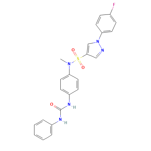Smiles CN(C1=CC=C(C=C1)NC(=O)NC2=CC=CC=C2)S(=O)(=O)C3=CN(N=C3)C4=CC=C(C=C4)F