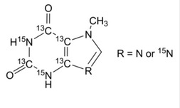 7-Methylxanthine-2,4,5,6-13C4, 1,3,9-15N2 (with variable 15N labeling at N9)