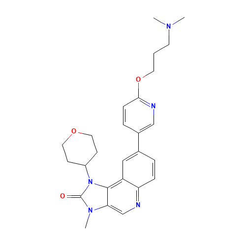 Smiles CN1C2=CN=C3C=CC(=CC3=C2N(C1=O)C4CCOCC4)C5=CN=C(C=C5)OCCCN(C)C