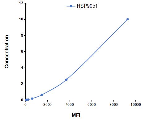 This assay has high sensitivity and excellent specificity for detection of Heat Shock Protein 90kDa Beta 1 (HSP90b1) ,etc. by FLIA (Flow Luminescence Immunoassay).