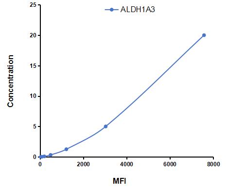 Intra-assay Precision (Precision within an assay): 3 samples with low, middle and high level Aldehyde Dehydrogenase 1 Family, Member A3 (ALDH1A3) ,etc. by FLIA (Flow Luminescence Immunoassay) were tested 20 times on one plate, respectively.