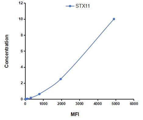 This assay has high sensitivity and excellent specificity for detection of Syntaxin 11 (STX11) ,etc. by FLIA (Flow Luminescence Immunoassay).